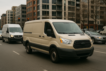 y la furgoneta de empresa, y desde allí se dirige a distintos domicilios de clientes.